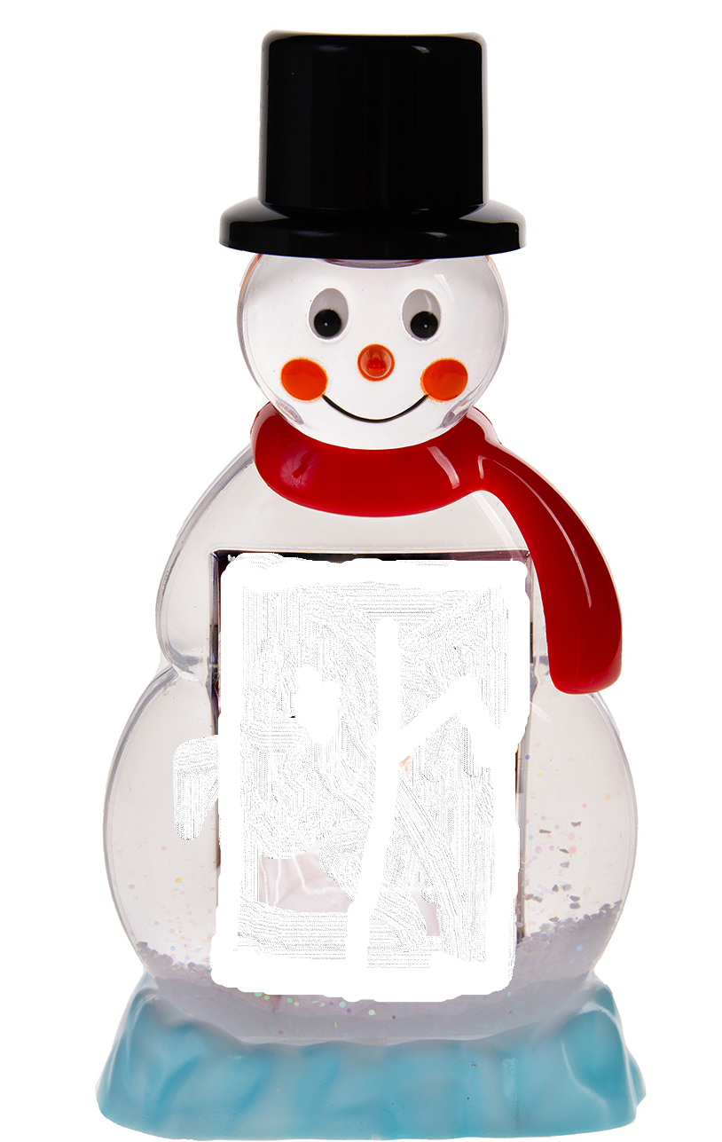Materiál plast, výška sněhuláčka je 16,5 cm, velikost potisku cca 4,4 x 7 cm.